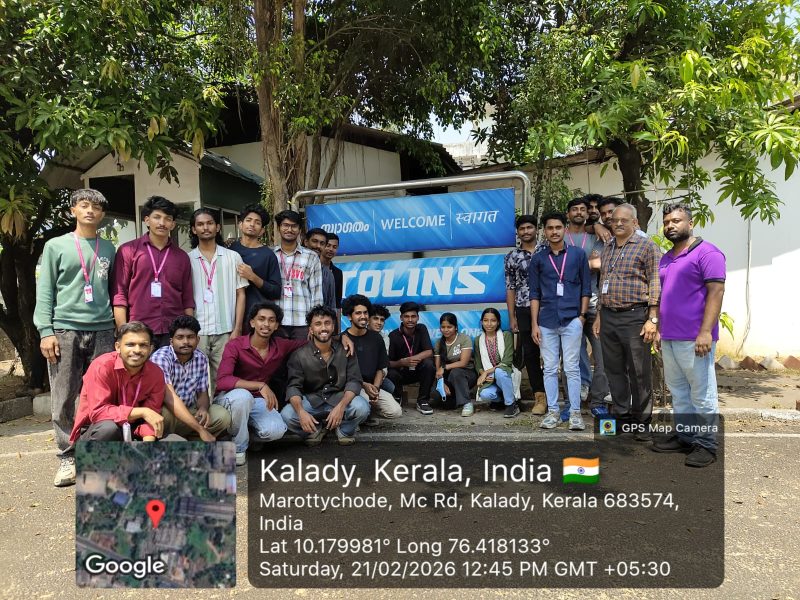 On 21 February 2026, S4 Mechanical Engineering students visited Tolins Tyres Limited at Marottychode, Kalady, Kerala, accompanied by Prof. Anil M.G, Associate Professor, Mechanical Engineering Department, MBITS.The programme began with a welcome session, where company officials presented an overview of the organization’s history, growth, and diverse product range.Students learned that the company manufactures tyres for two-wheelers, three-wheelers, light commercial vehicles, and agricultural vehicles, along with precured tread rubber for retreading.Before entering the shop floor, students were briefed on safety measures and instructed to adhere to industrial safety regulations.During the plant tour, engineers explained each stage of manufacturing, starting from raw material mixing of natural and synthetic rubber with chemical additives.Students also observed the curing process and quality control tests carried out to ensure tyre strength, durability, and performance.The visit concluded with an interactive session that clarified queries on production planning, automation, maintenance, and career opportunities, making the experience highly informative and educational.