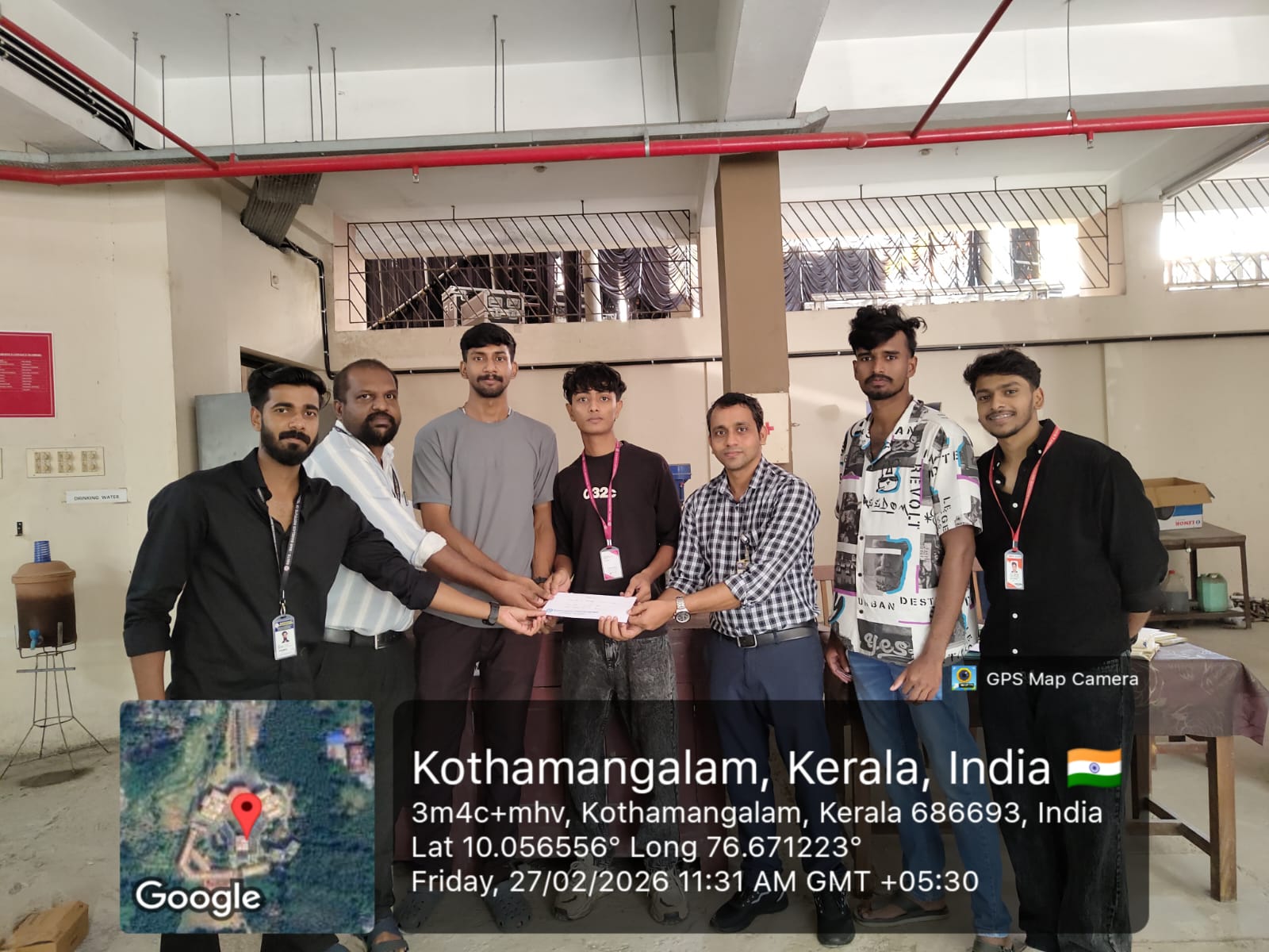 The first prize was won by Mr. Abhimannue Reni and Mr. Abhinath Soman (S4 ME), who received a cash prize of ₹2000. The second prize, along with a cash prize of ₹1000, was awarded to Mr. Jerit Tomy and Mr. Basil Varghese (S4 ME).