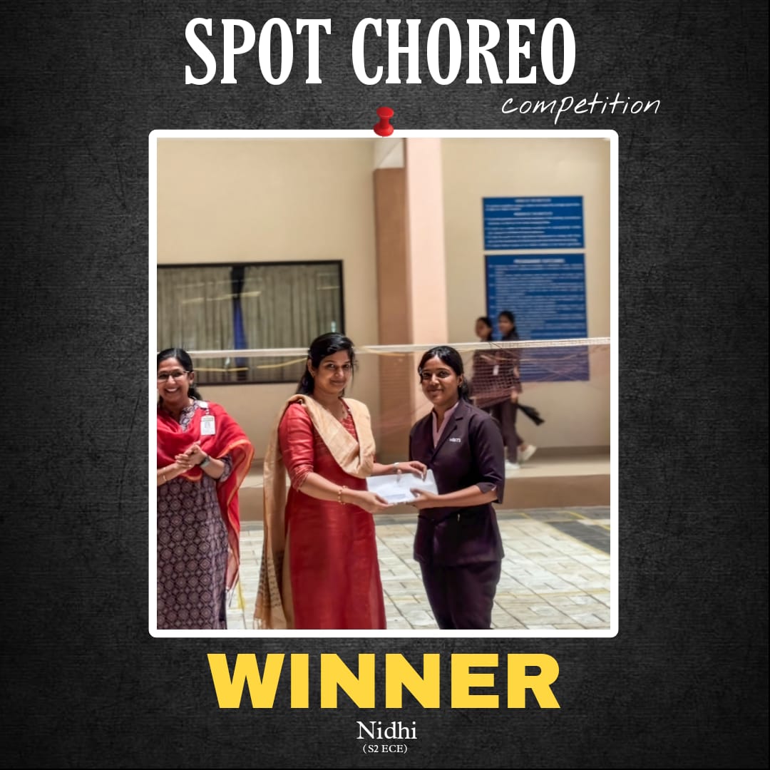 The MBITS Dance Club set the stage on fire with its exhilarating “Spot On! Spot Choreo” competition held on 14th March 2025 at 12:30 PM at the Badminton Court near the APJ Seminar Hall. With a registration fee of just ₹20 and a prize pool of ₹500, the event was open to all and truly delivered on energy, creativity, and fun. The event saw 6 talented participants take the stage, delivering impromptu dance performances to randomly played tracks, impressing both the audience and the judges. First prize got to Nidhi (S2 ECE) and Niya Mariya (S2 CSE C) bagged the second prize.