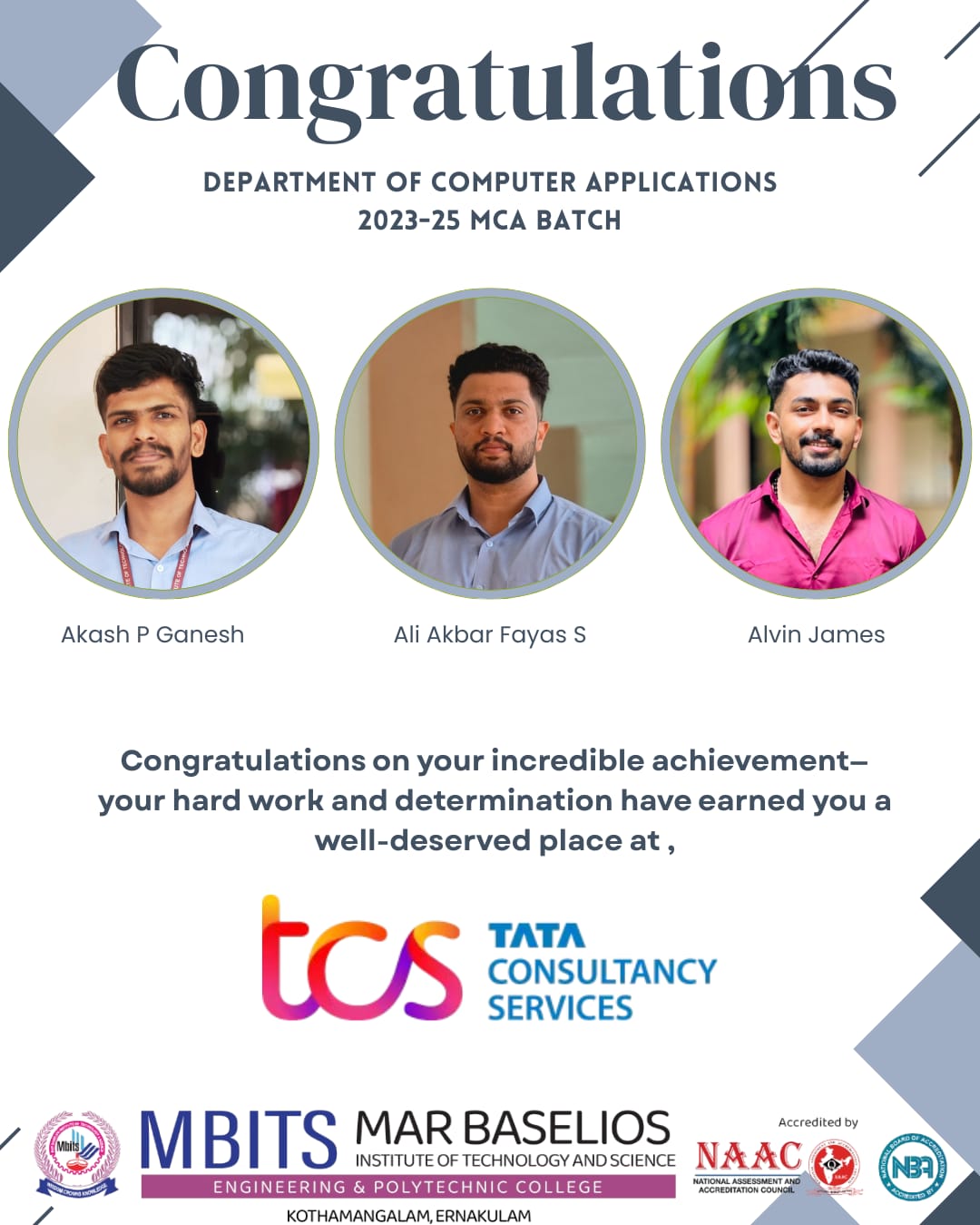 Congratulations on Placement at TCS , form Department of Computer Applications.