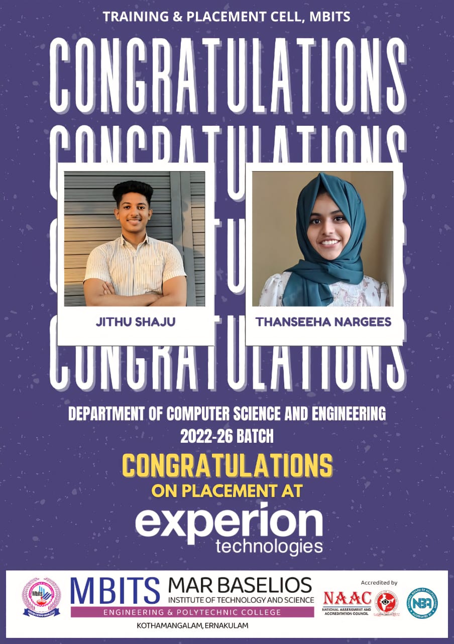 Congratulations to the students who got placed in EXPERION Technologies
