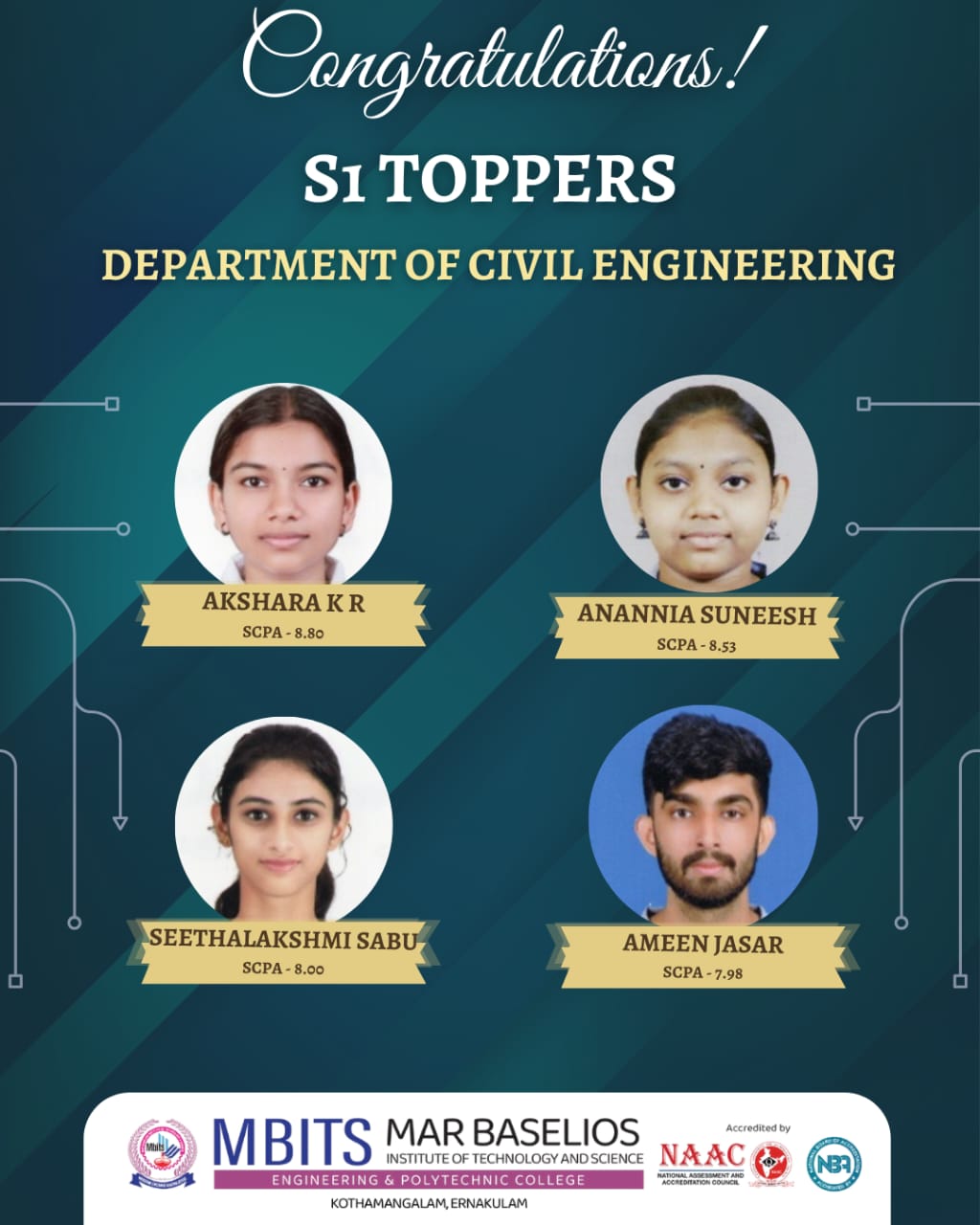 Congratulations to S1 Toppers of Civil Engineering Department